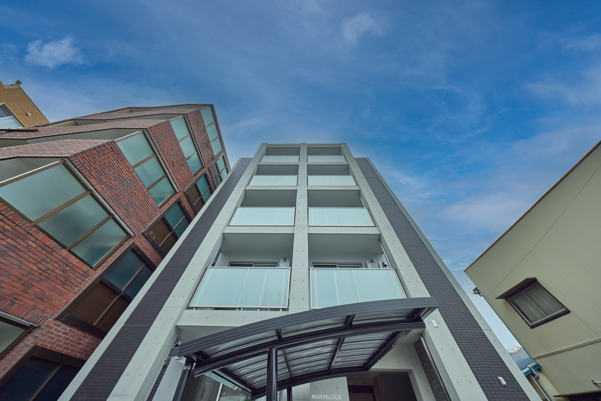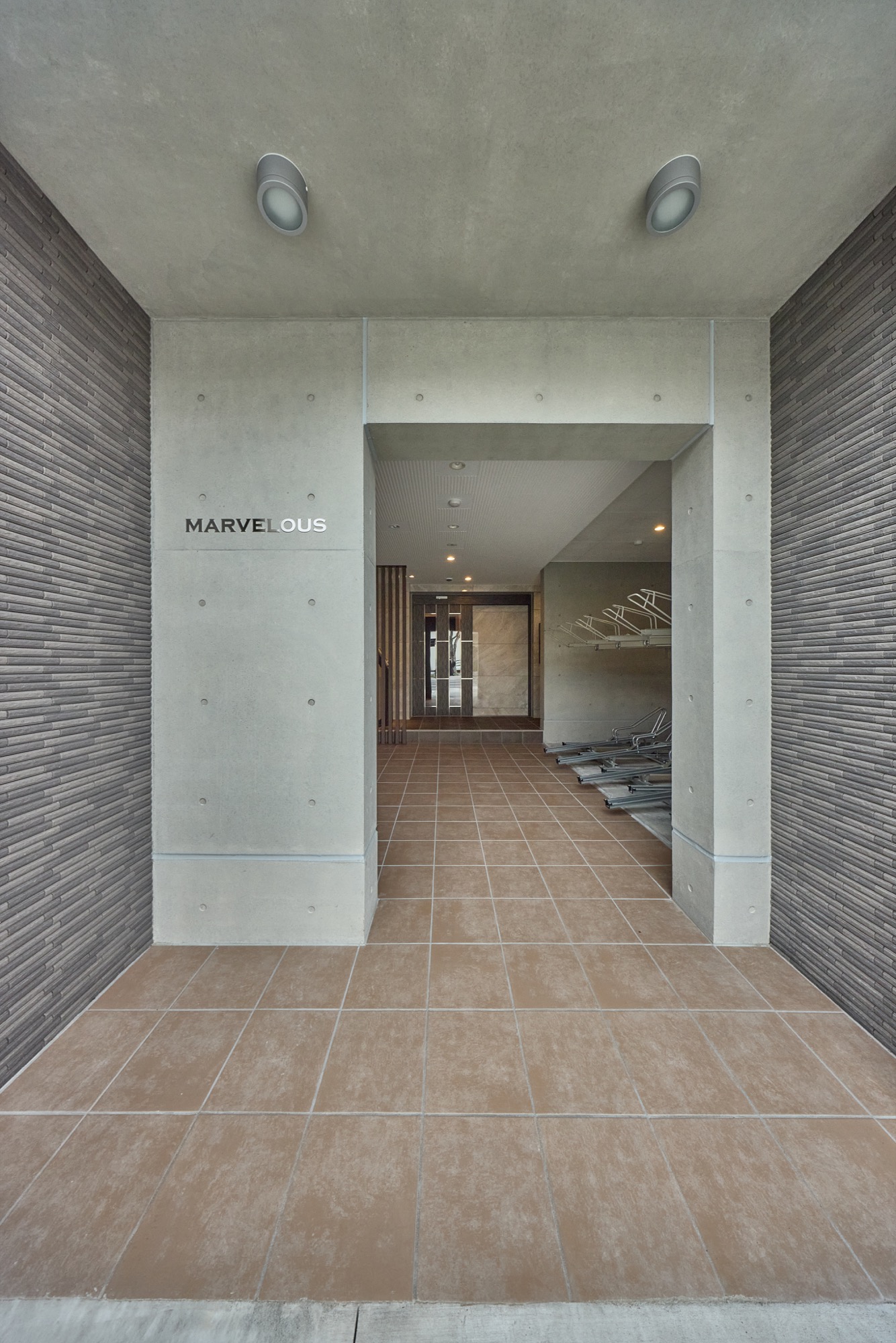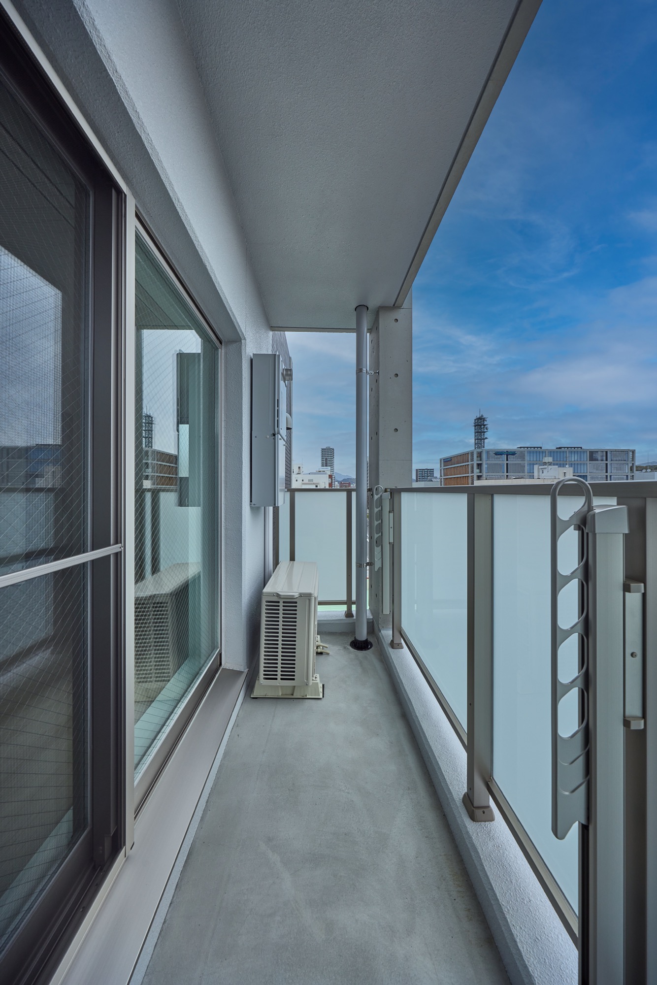 静岡駅にほど近く、大通りに面していることから、都市型の洗練された印象を与えるデザインを目指しました。コンクリート打ち放しの無機質な質感に、ガラス手摺の軽やかさと外壁タイルの温かみを組み合わせることで、素材のコントラストを際立たせた仕上がりとなっています。外観だけでなく、エントランスや共用部にもアーバンな雰囲気を持たせ、入居者にとっても誇れる住まいを意識しました。オーナー様のこだわりと私たちの提案が融合した、魅力ある物件に仕上がりました。