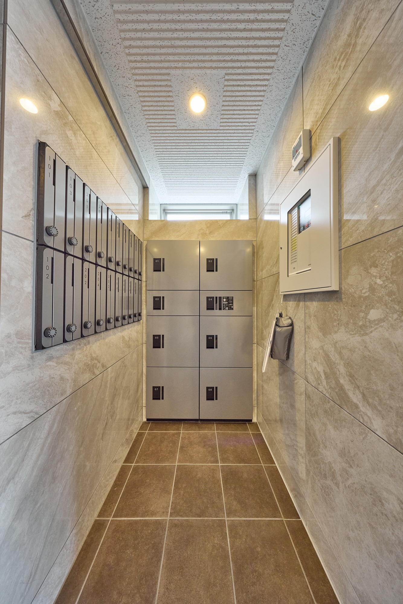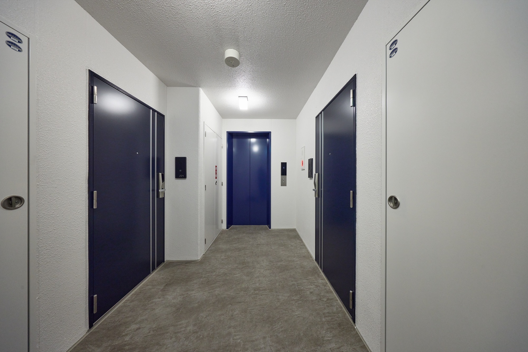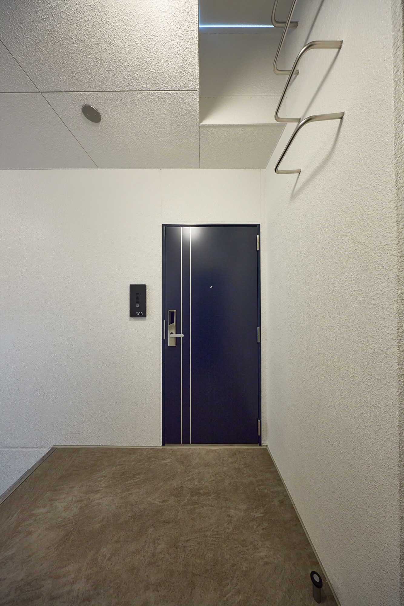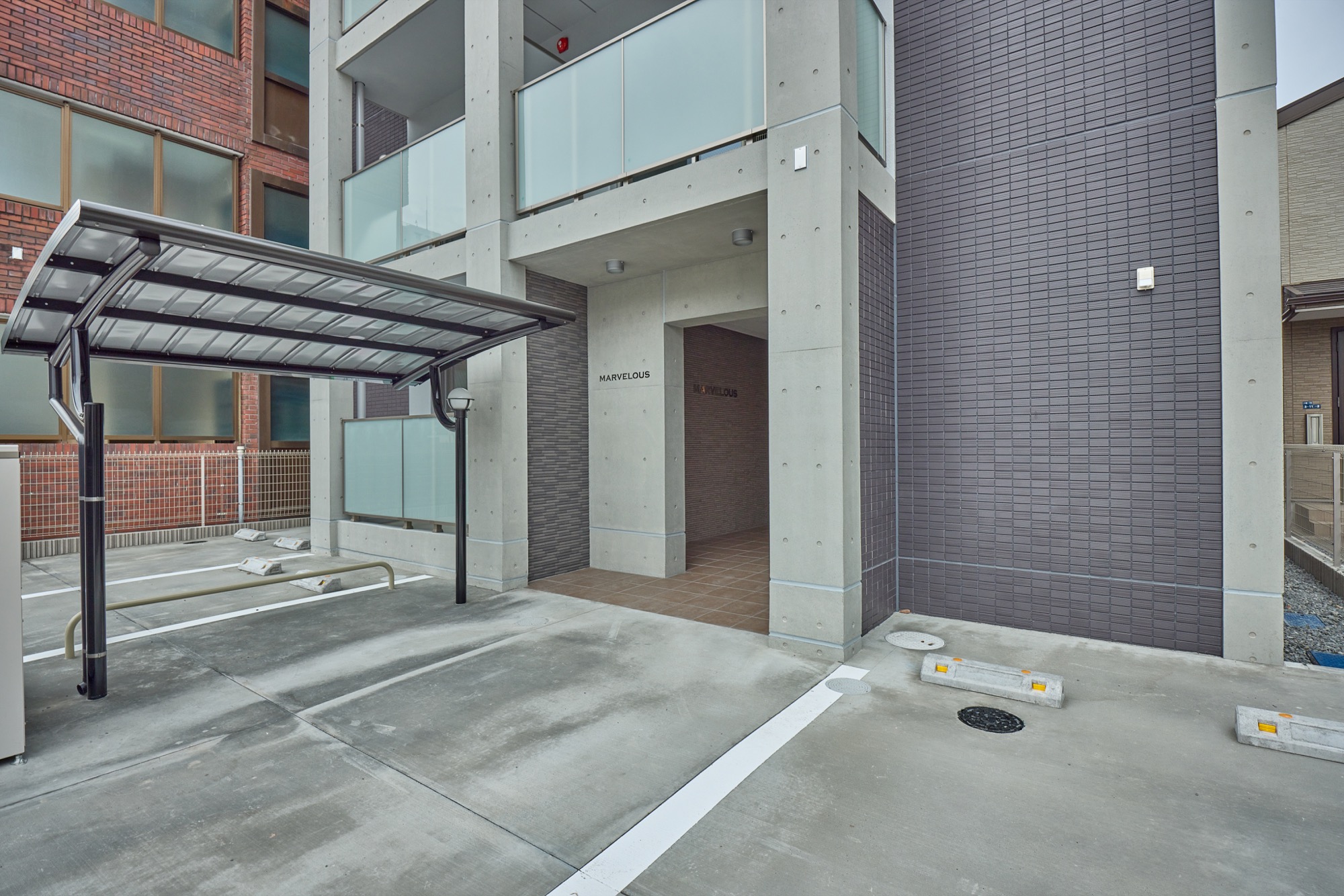 静岡駅にほど近く、大通りに面していることから、都市型の洗練された印象を与えるデザインを目指しました。コンクリート打ち放しの無機質な質感に、ガラス手摺の軽やかさと外壁タイルの温かみを組み合わせることで、素材のコントラストを際立たせた仕上がりとなっています。外観だけでなく、エントランスや共用部にもアーバンな雰囲気を持たせ、入居者にとっても誇れる住まいを意識しました。オーナー様のこだわりと私たちの提案が融合した、魅力ある物件に仕上がりました。